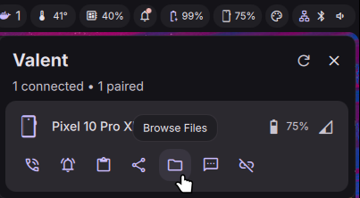 Clone the plugin repository into your ~/.config/DankMaterialShell/plugins/ folder and restart your dms session with dms restart. NOTE: Some plugins may have additional dependencies that need to be installed manually, please refer to the plugin documentation for more information, some plugins are part of a monorepo and need to be installed by copying the relevant path to the plugins folder.