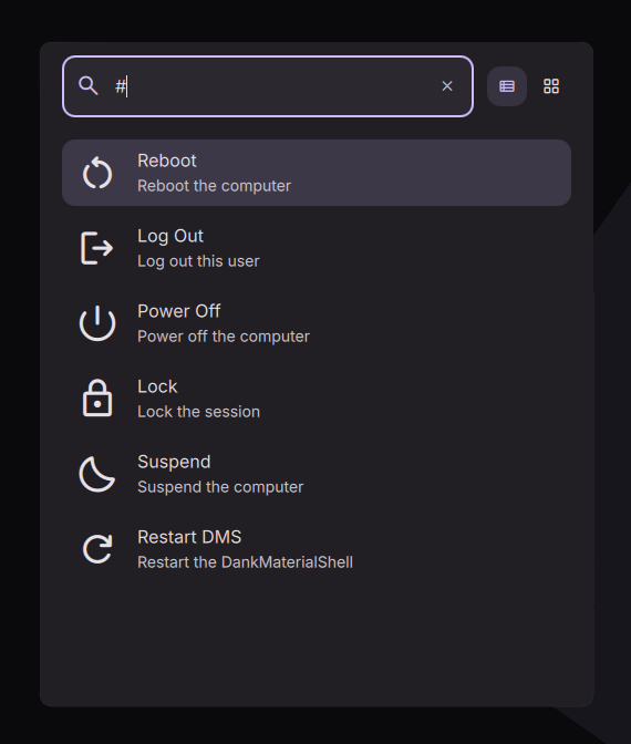 This plugin is part of a monorepo, please copy the contents of the SessionPowerMenu folder to your ~/.config/DankMaterialShell/plugins/ folder.