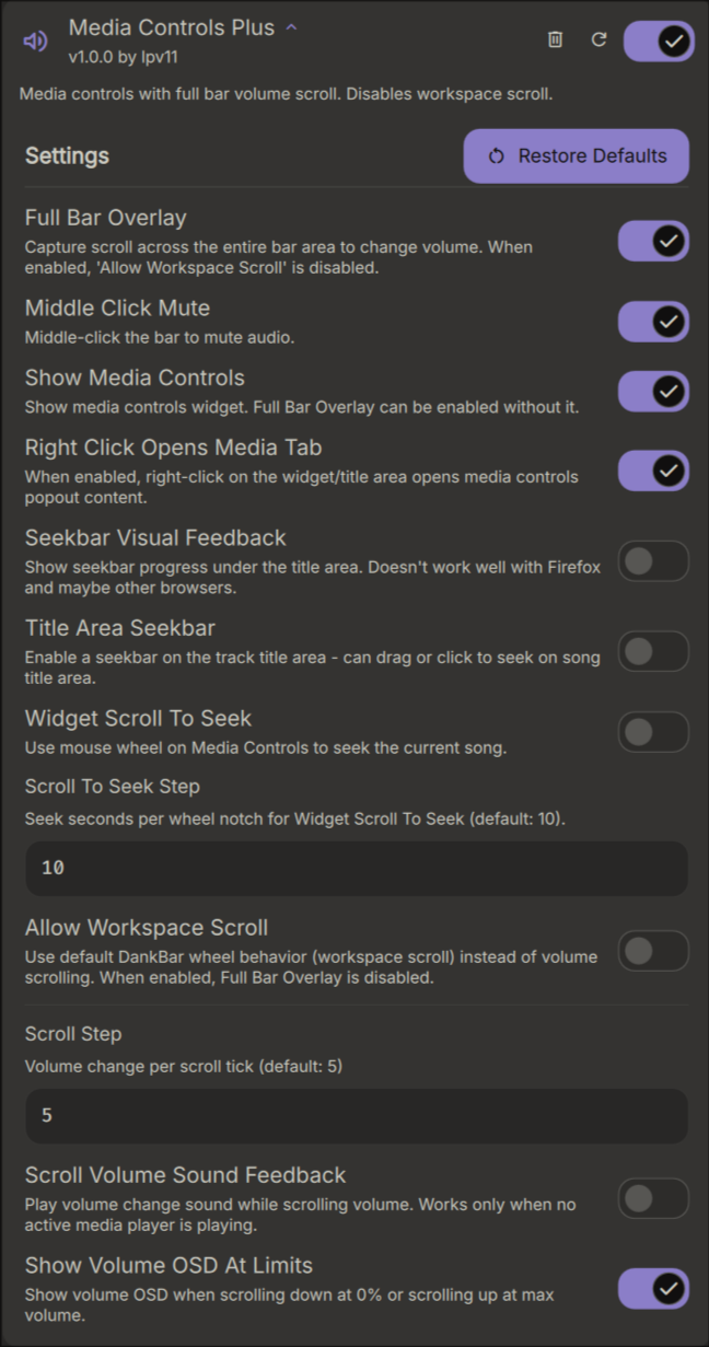 Some plugins are created by third-party developers and are not officially supported by the Dank Material Shell team. Use them at your own risk. In case of issues, please contact the plugin author directly.