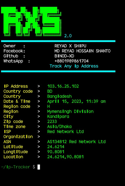 Ip-Tracker is used to track an ip address. Ip-Tracker is developed for Termux and Linux based systems. you can easily retrieve ip address information using Ip-Tracker. Ip-Tracker use ip-api to track ip address.
