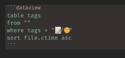 I would like to create a table with all files that include a specific tag e.g. #📥️ (defined in frontmatter) |