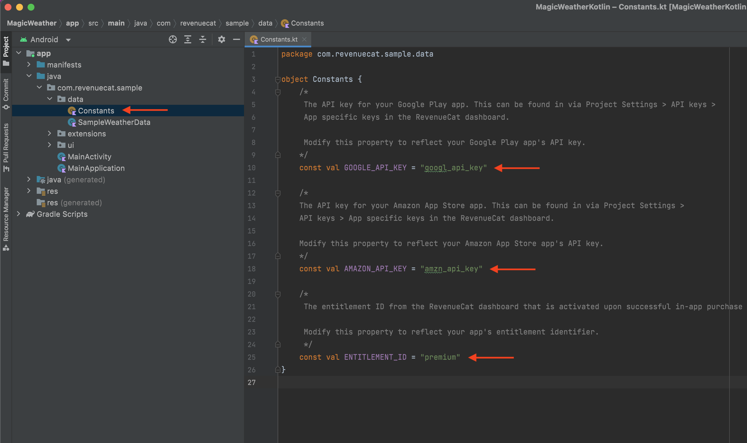 | 🕹 Configuring the Purchases SDK | MainApplication.kt |