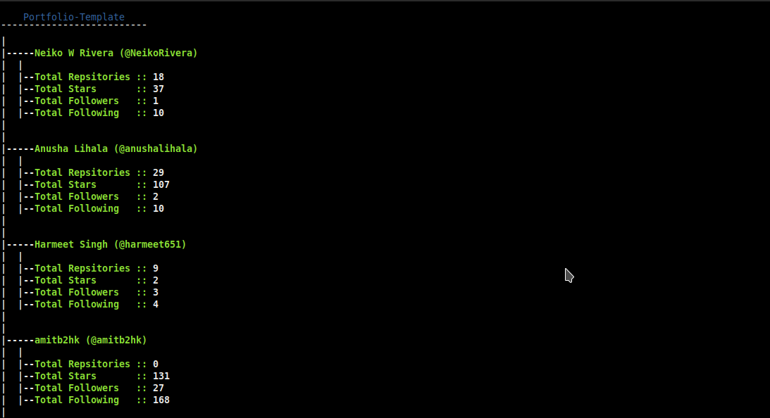 Total repsitoriesTotal starsTotal FollowersTotal Following