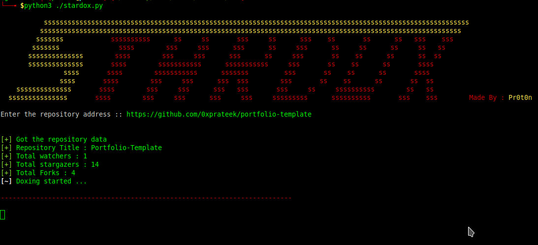 git clone https://github.com/0xprateek/stardoxcd stardoxpython ./setup.py install