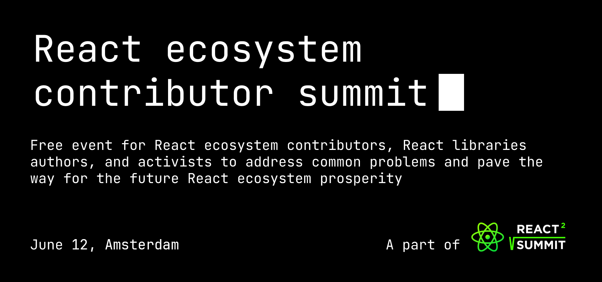 All existing React events gather wide audience of software developers to get updates about the technology. There are practically no events designed for React libraries developers where they can gather in productive setting to discuss common problems and the future of the React ecosystem. That's why we've been organising the React Ecosystem Contributors Summit, and this year will be its 3rd edition!