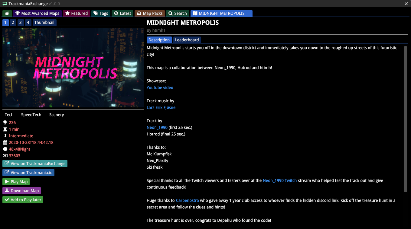 - Online leaderboard included (for Trackmania 2020, from trackmania.io)