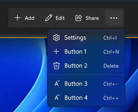 The WinUI3's built-in CommandBar does not have Acrylic background. We fixed it for you. To use it, simply add CommandBarHelper.AcrylicWorkaround="True" as an attached property on your CommandBar.