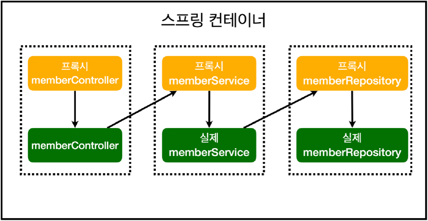 비즈니스 로직에 접근할 때 객체에 바로 접근하지 않고 프록시를 통해 간접적으로 접근