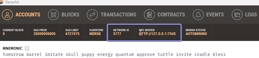Run the ganache, and copy the rpc url and chain id.