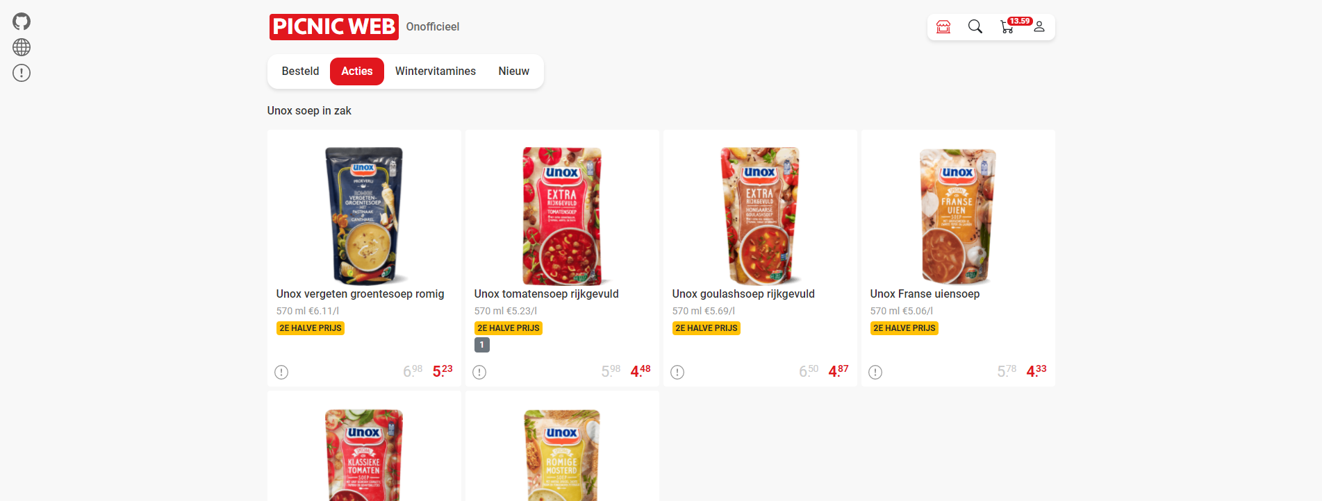 Unofficial (unaffiliated) web interface for the online supermarket Picnic. Uses the npm library picnic-api.