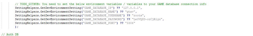 i'm having the same problem, the problem is most likely that there is more than one "GAME_DATABASE_PASSWORD", so I'll make the password "admin" and test it. |