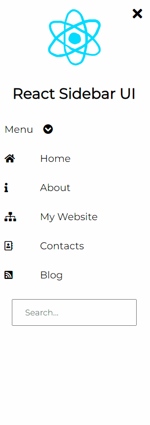 https://unpkg.com/react-sidebar-ui@1.2.0/dist/index.cssinto your index.html file - In order to use icons, you should import Font-Awesome