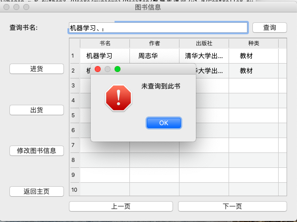 - 查询图书信息(当查询失败时,发出提示信息,展现所有图书)