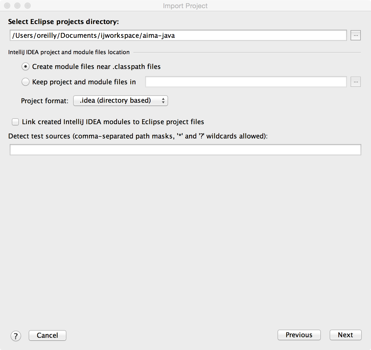 Import Projectdialog select options that suit your workspace: