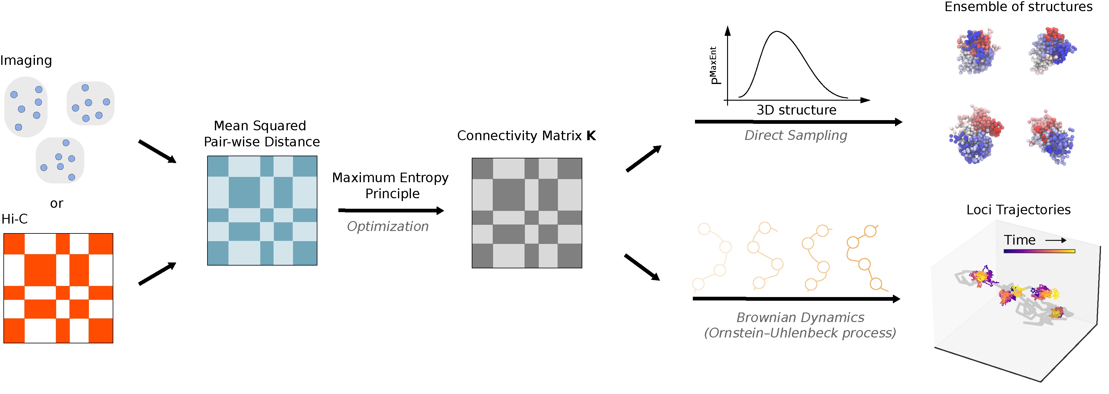 - Shi, Guang, and D. Thirumalai. "A maximum-entropy model to predict 3D structural ensembles of chromatin from pairwise distances with applications to interphase chromosomes and structural variants." Nature Communications 14.1 (2023): 1150. link