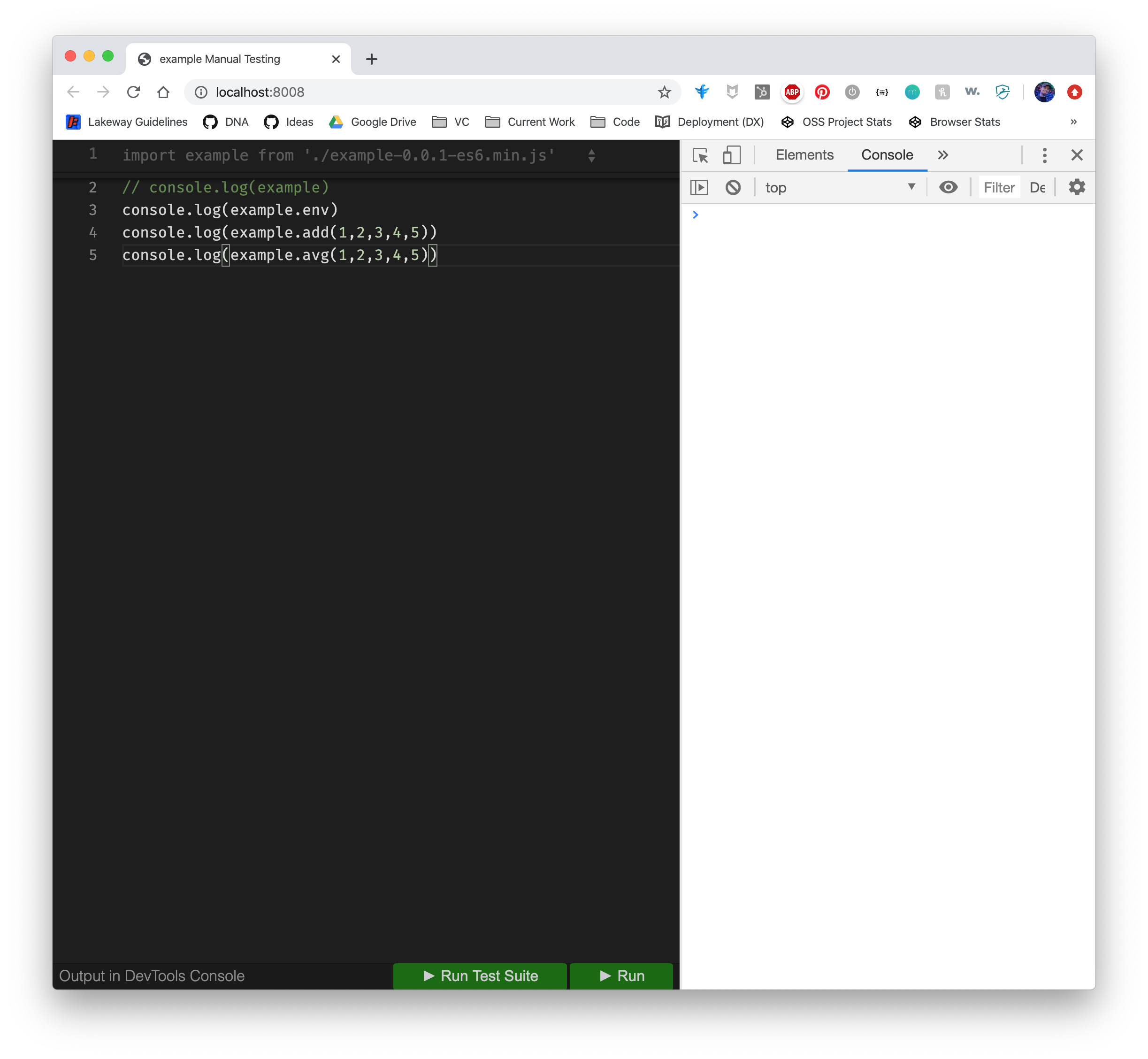 import mylib from '../../.node/index.js'The source-map-support/register.js import automatically includes support for the sourcemaps this template creates. The test runners are all configured to replace this with the appropriate code in browsers and Node.