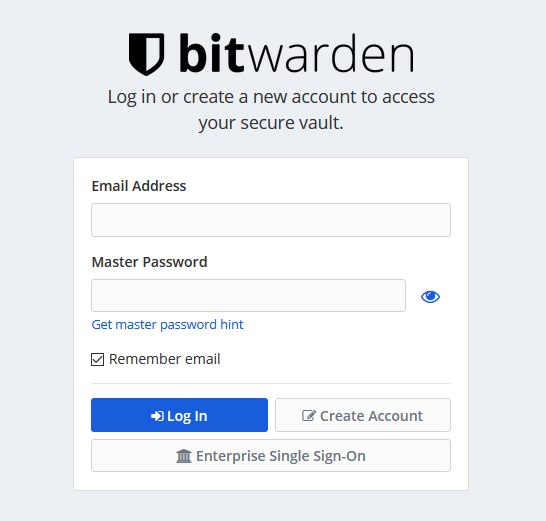 If you are self-hosting the Bitwarden software or using the Bitwarden software on-premise, in each case under a subscription or license agreement with Bitwarden, you may use the Bitwarden Marks to describe or reference the password management platform or use the Bitwarden login page shown below for your users or organization: