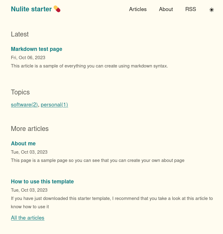 Nulite is a simple, elegant, minimalistic stater project for Eleventy to help you create a simple blog with focus on performance and simplicity.