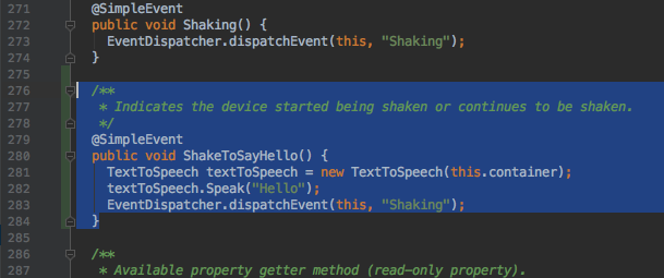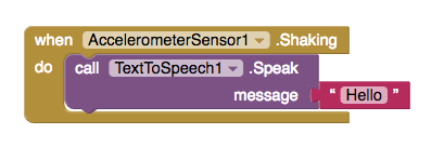 (Although it might seem combining shaking and text-to-speech into one block is not very useful to users, the primary purpose of this exercise is letting you know how to build your own block, and know what is the concept behind when building App Inventor block.)
