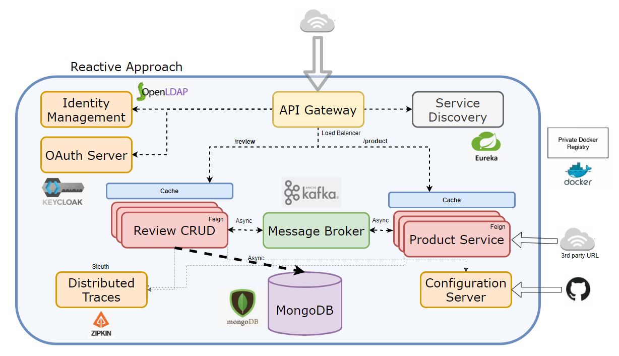 Example of a Microservices Deployment using Spring Cloud.We implement two microservices, one that collects product reviews from a third-party website and another that combines all the reviews related to a given product.