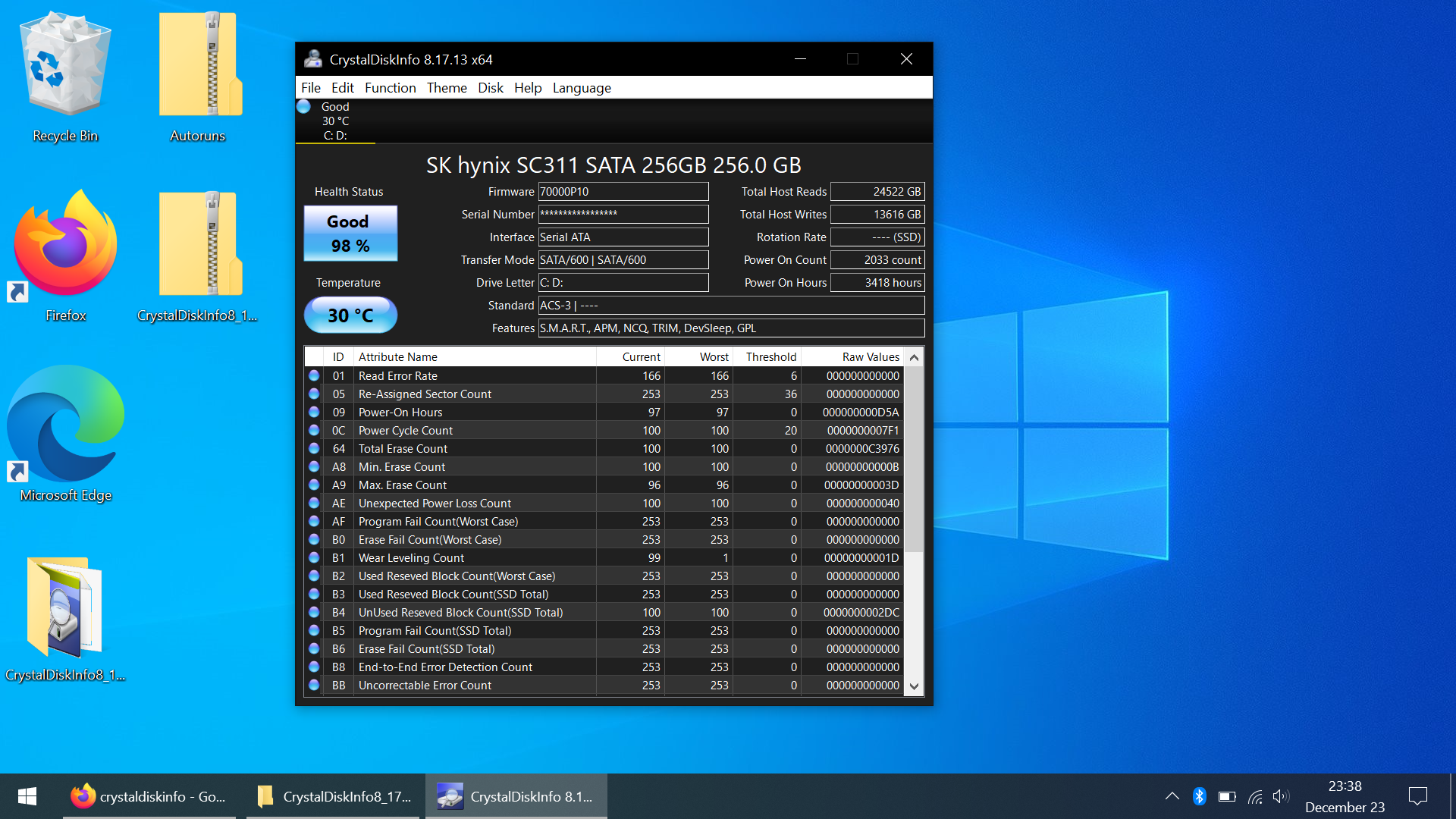 I don't have Windows anymore on this laptop to test CrystalDiskInfo but I have old files from the end of 2022 showing the same values which would've read "Good" "98%".