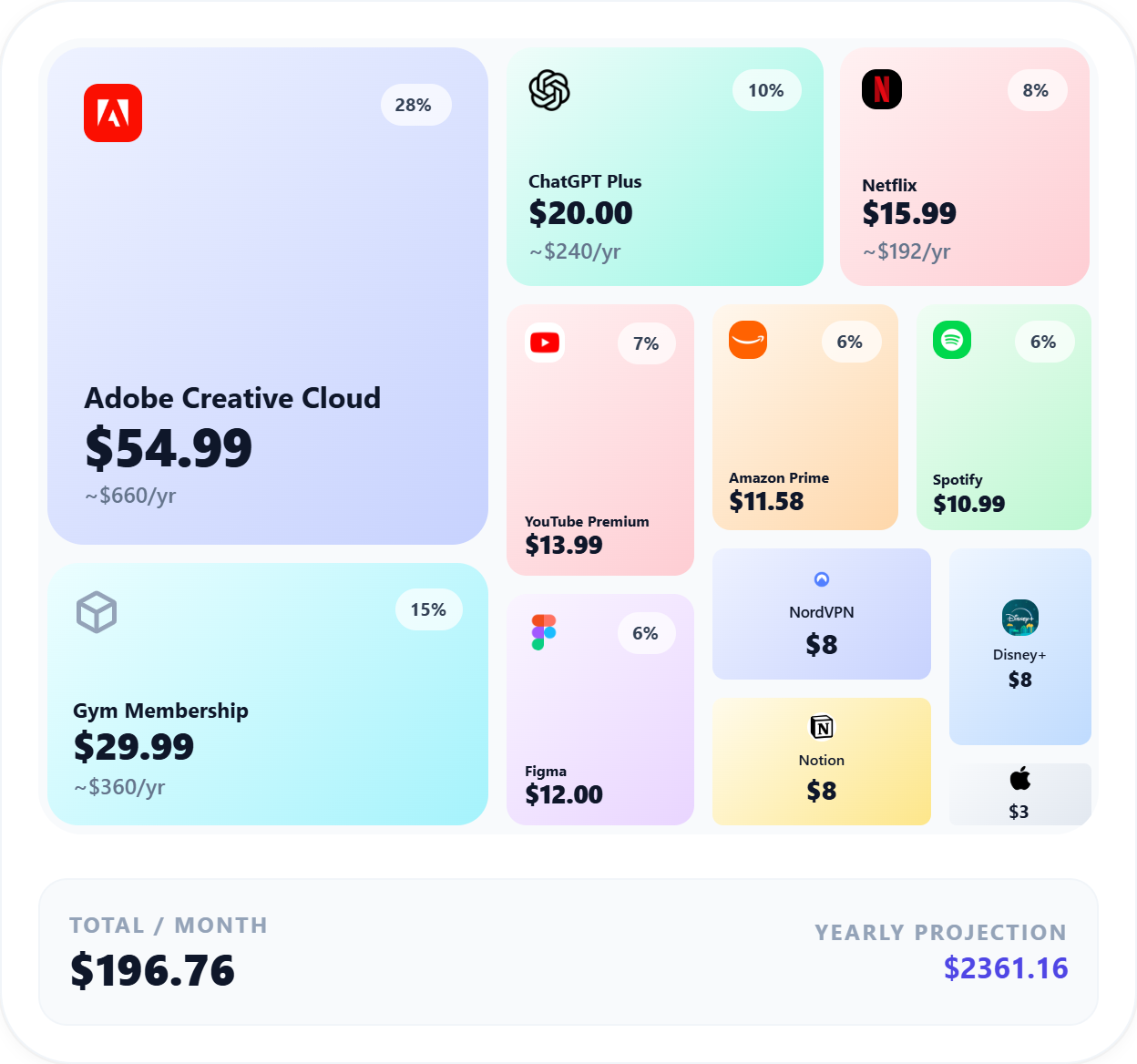 Hi, I recently came across this post on reddit and liked the view, maybe this can find it's way into wallos too? <img src="https://i.redd.it/vg8m5kjksw6g1.png" alt="Image" /> Thanks! https://www.reddit.com/r/webdev/s/zB7zkPJtA9