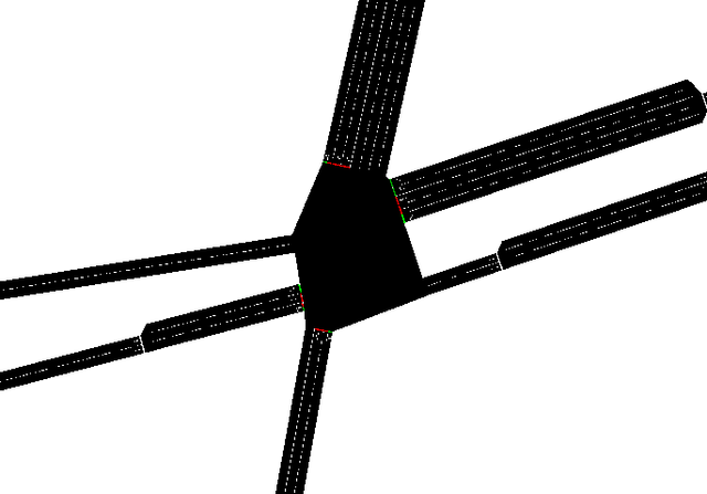 - The SUMO road network definition is pre-processed and for each traffic light extracted an internal representation of the corresponding intersection that can be used to observe the situation at the intersection by the reinforcement learning agent in a convenient way;