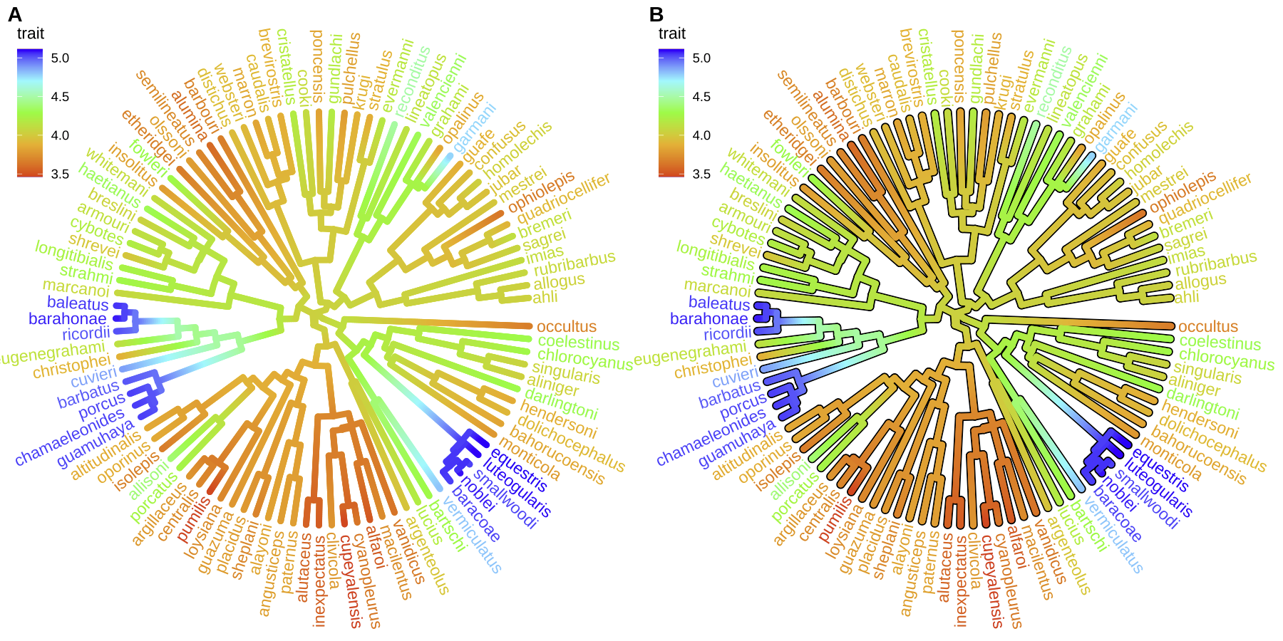 I am really sad I can not access the advanced ggrepel options.  This looks not so good. In ggtree I can set angle="auto" and it always points outwards. Is that possible?