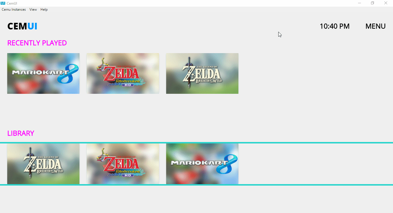 CemUI is an easy-to-use, open source, game manager for the popular Wii-U Emulator, Cemu.