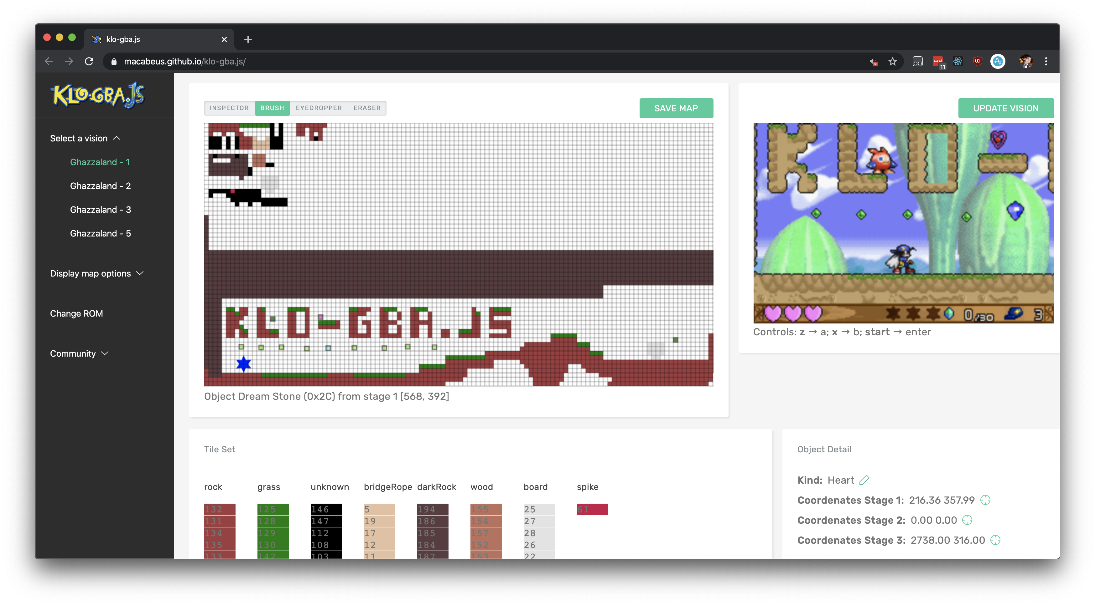 ![]() klo-gba.js, level editor for Klonoa: Empire of Dreams |