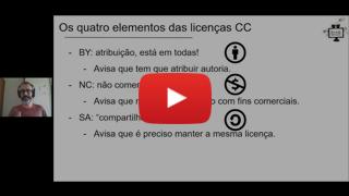 Nesta aula vamos aprender sobre os elementos das licenças CC e conhecer as seis licenças. A imagem a seguir irá te direcionar para o vídeo no Youtube (use a opção de abrir em outra aba se desejar):