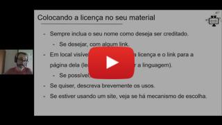 Agora vamos aprender como escolher a licença que desejamos usar em nossos materiais e como podemos usar outros materiais disponíveis na internet a partir do que suas licenças permitem e não permitem. A imagem a seguir irá te direcionar para o vídeo no Youtube (use a opção de abrir em outra aba se desejar):