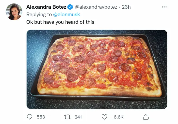 马斯克在推特说,烤箱只能烤一个披萨,实在太浪费空间,应该像他发的那样烤。