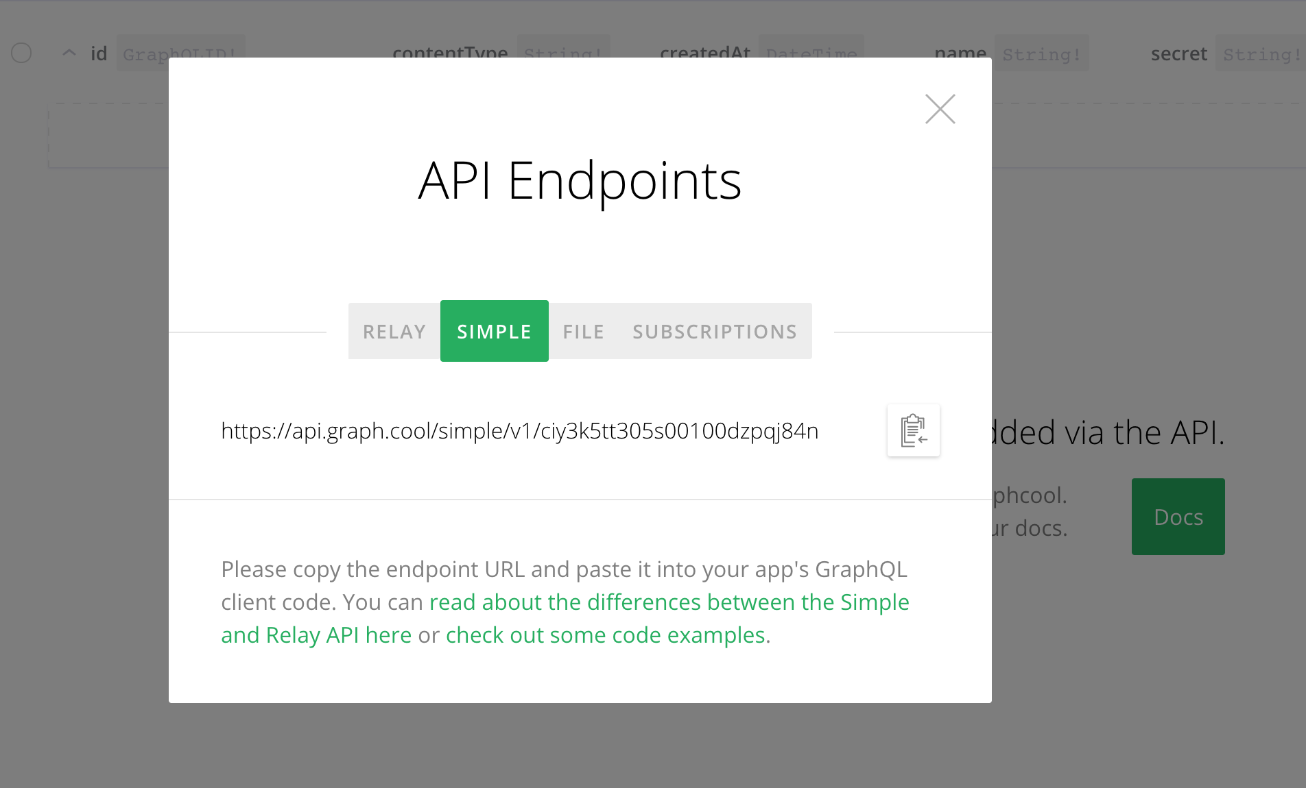 Setup your GraphQL backend using the graphql-up button at the top of this section. Once your backend is created in Graphcool, copy your GraphQL enpoint using the enpoints link.