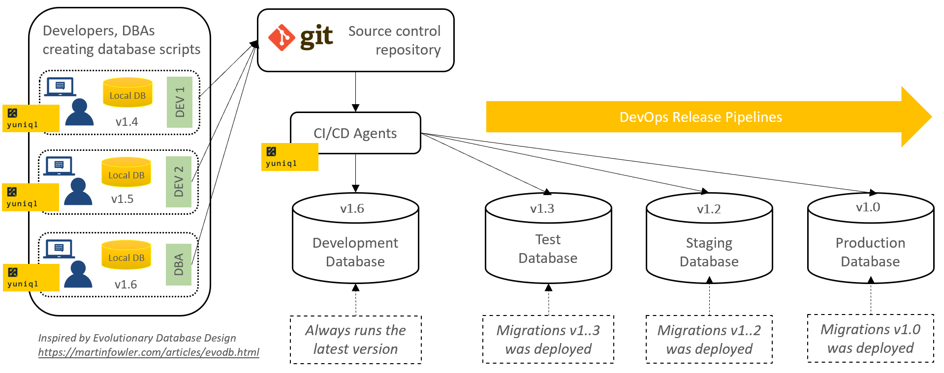 Image inspired by Evolutionary Database Design by Martin Fowler and Pramod Sadalage.
