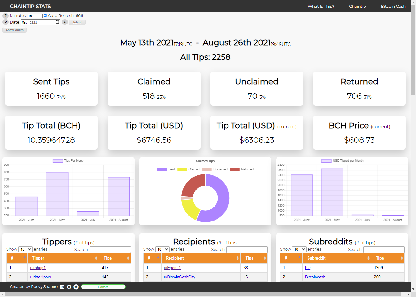 Chaintip for Reddit was created and is maintained by u/Tibanne and he is the owner of chaintip.org. This live dashboard is a completely separate project but for now, he has allowed the use of the stats subdomain so its easy for users to find.