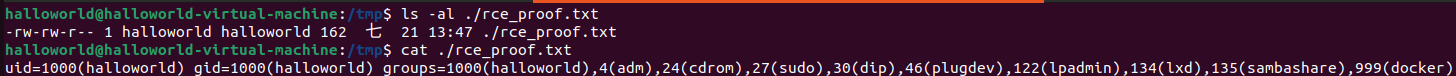 /tmp/rce_proof.txtis created on the victim server, containing the output of the id command, confirming RCE was achieved indirectly.