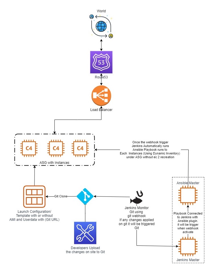 I just try to a new explanation method for easy to convey my work and details. Basically, this is an ansible-playbook with ASG Rolling update and Create an AWS Infrastructure with (ELB + ASG + Security Group). Its automated with Jenkins.