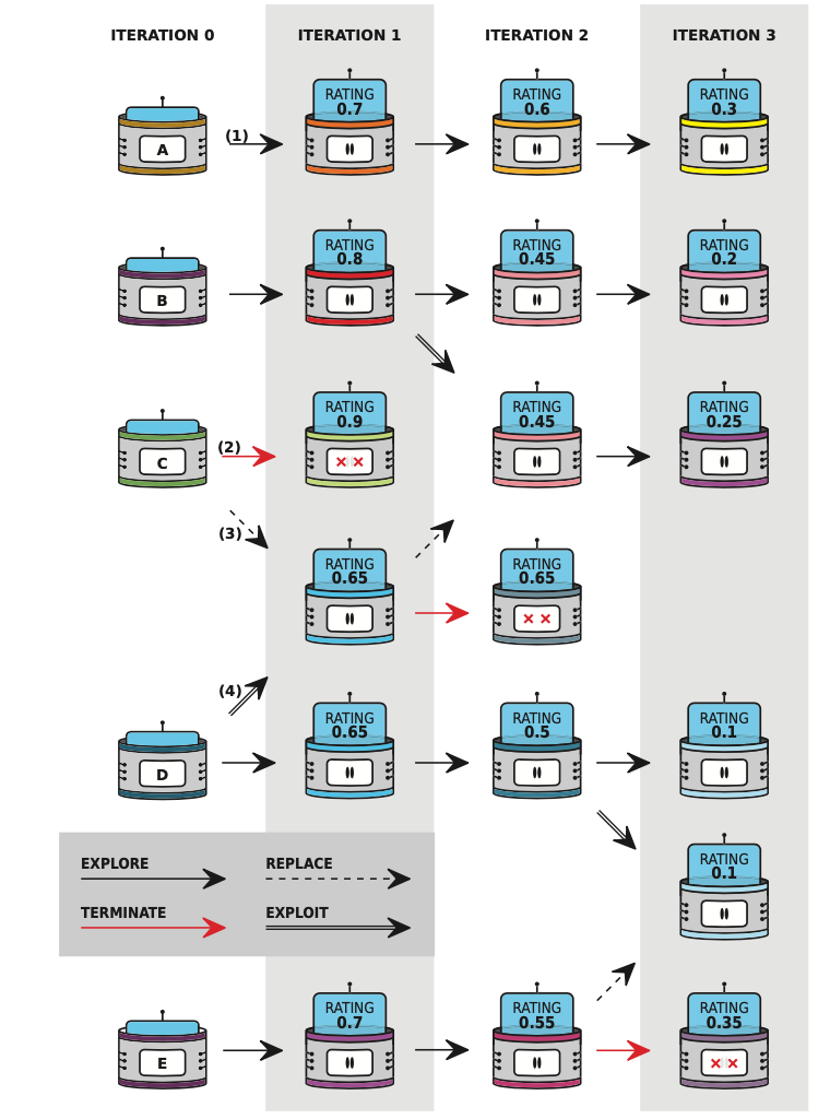 Illustration of PBT training process (Liebig, Jan Frederik, Evaluating Population based Reinforcement Learning for Transfer Learning, 2021)